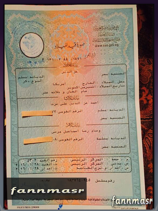 حصري فقط بالصور شهادتين الميلاد لاولاد احمد عز وزينة فن مصر