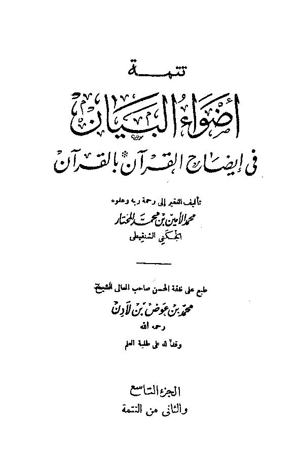 Tafsir De Sheikh As Shanqiti Adwa Al Bayan أضواء البيان في إيضاح القرآن بالقرآن تفسير