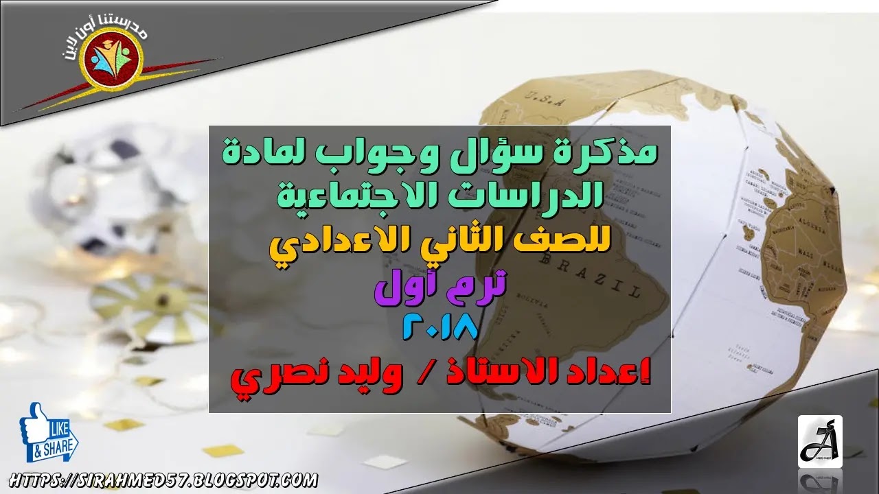 مذكرة سؤال وجواب لمادة الدراسات الاجتماعية للصف الثاني الاعدادي ترم أول 2018 إعداد الاستاذ وليد نصري