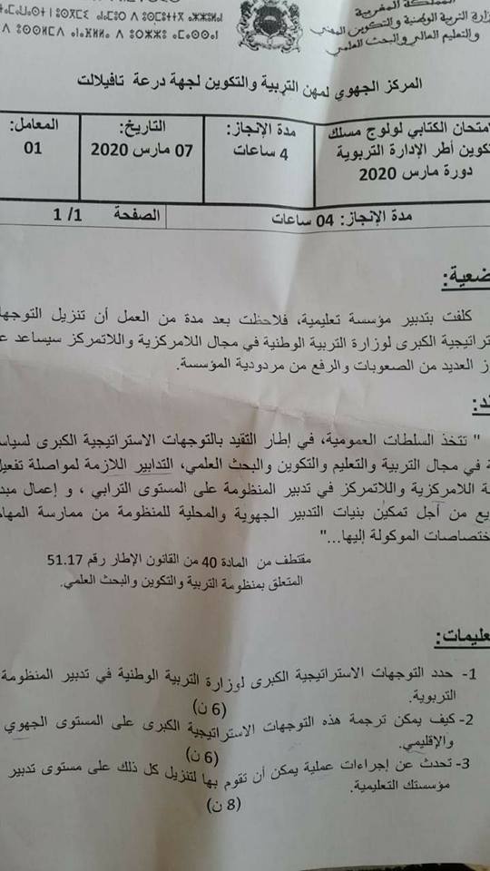 مواضيع مباراة الادارة التربية دورة مارس 2020