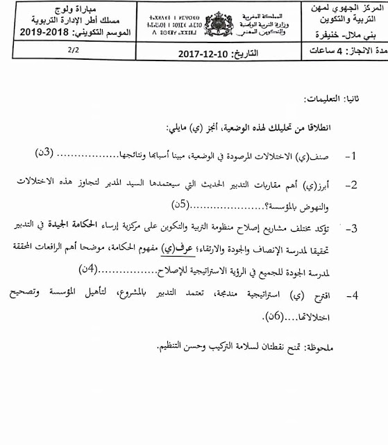 مركز بني ملال خنيفرة اختبار كتابي مباراة الإدارة التربوية 2018 2019
