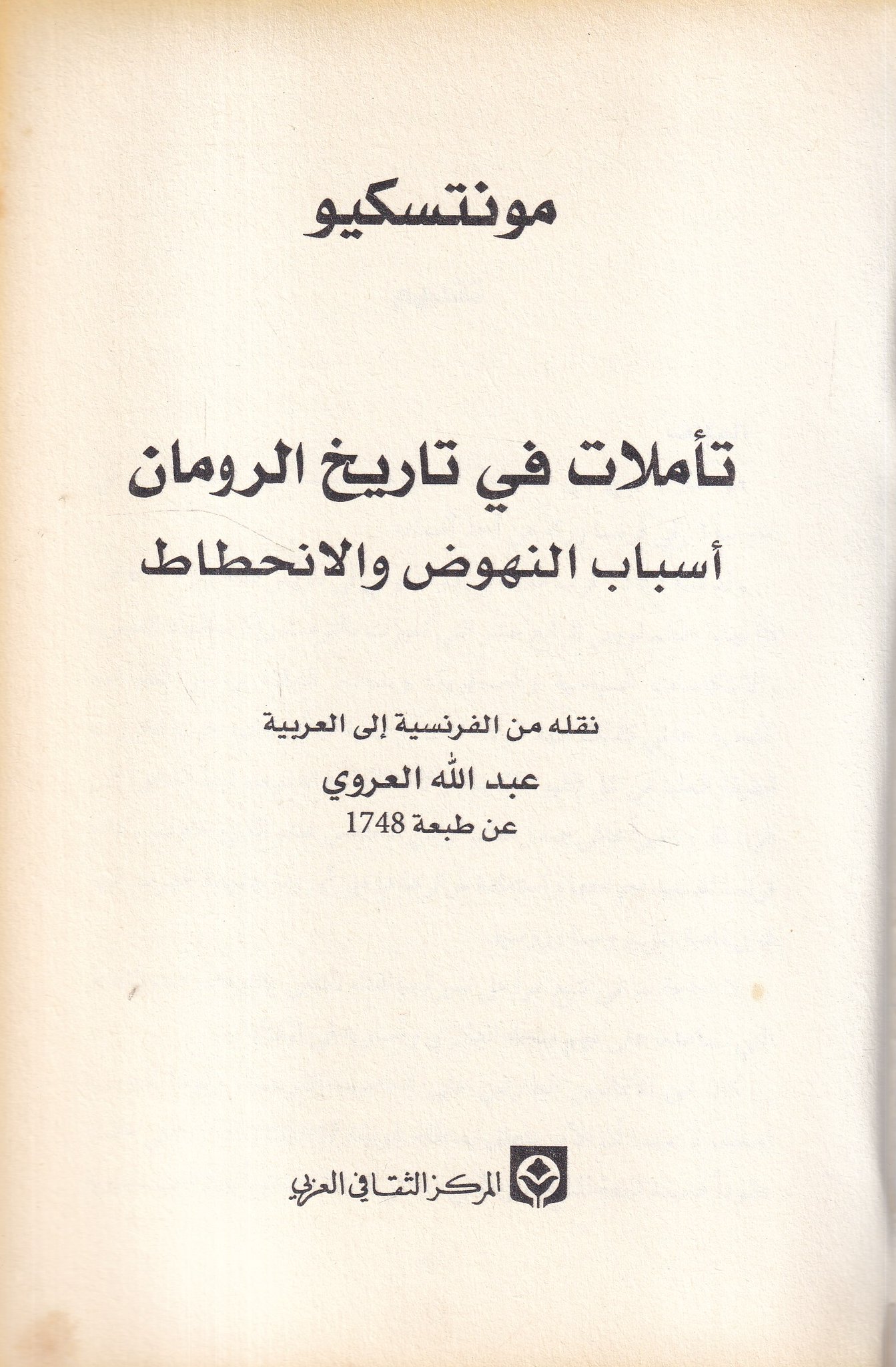 سعيد بنرحمون قراءة في كتاب مونتسكيو تأملات في تاريخ الرومان أسباب النهوض والانحطاط لعبد الله العروي