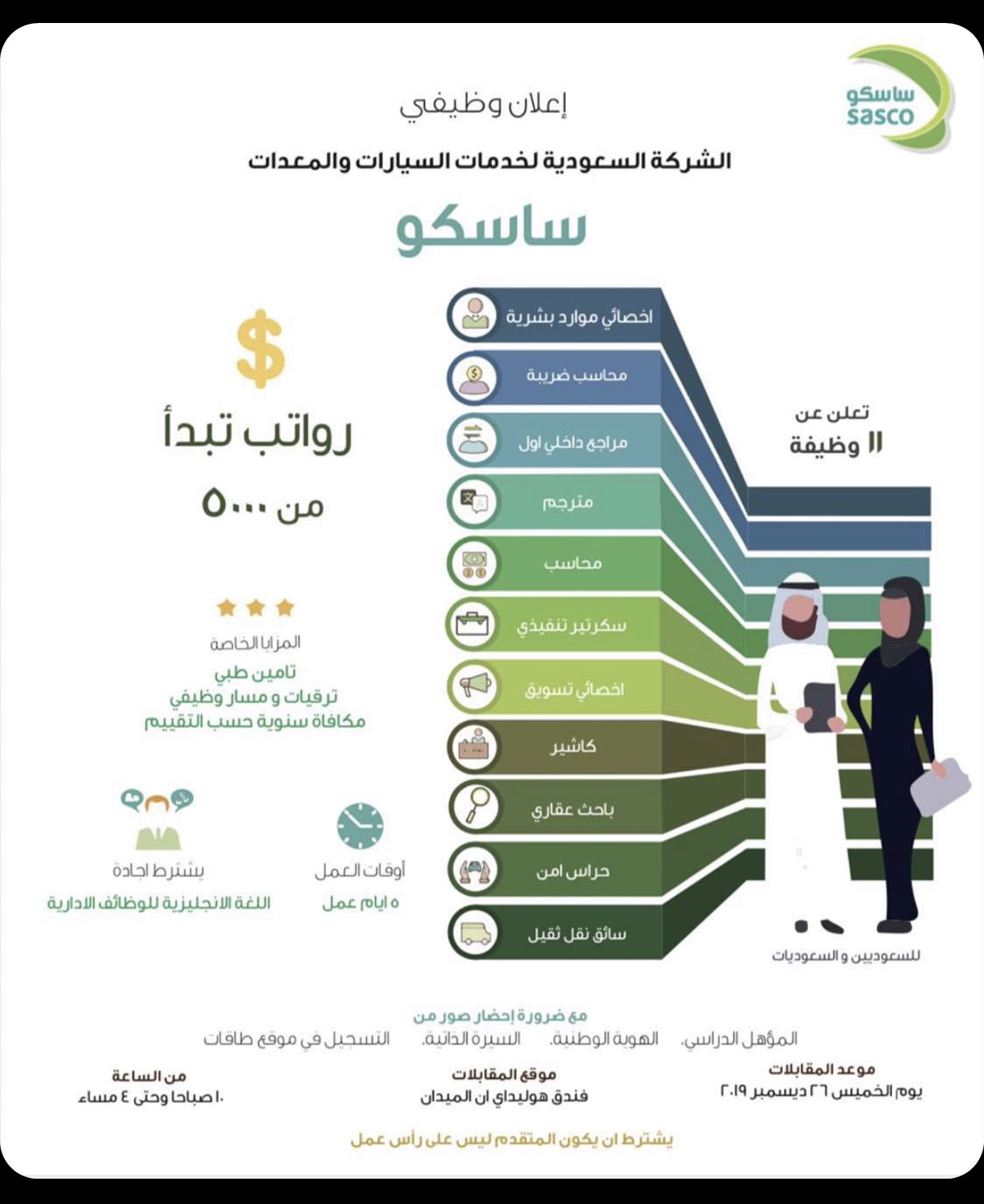ট ইট র وظائف للسعوديين المقابلات غدا الخميس من 10ص 4م رواتب تبدأ من 5000 ريال تعلن شركة ساسكو عن وظائف للرجال و النساء أخصائي موارد بشرية محاسب ضريبة
