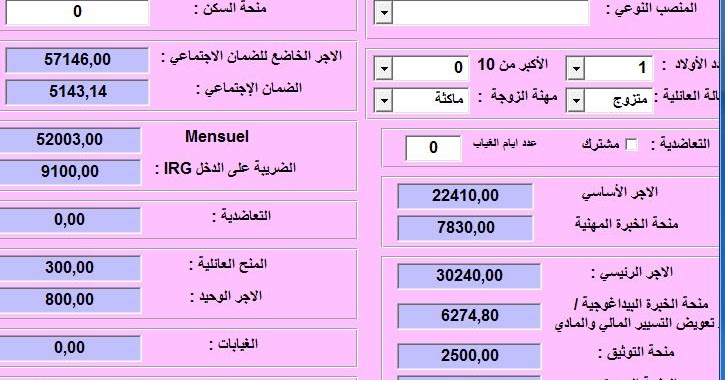 برنامج حساب الراتب للأساتذة 2019 طاسيلي الجزائري