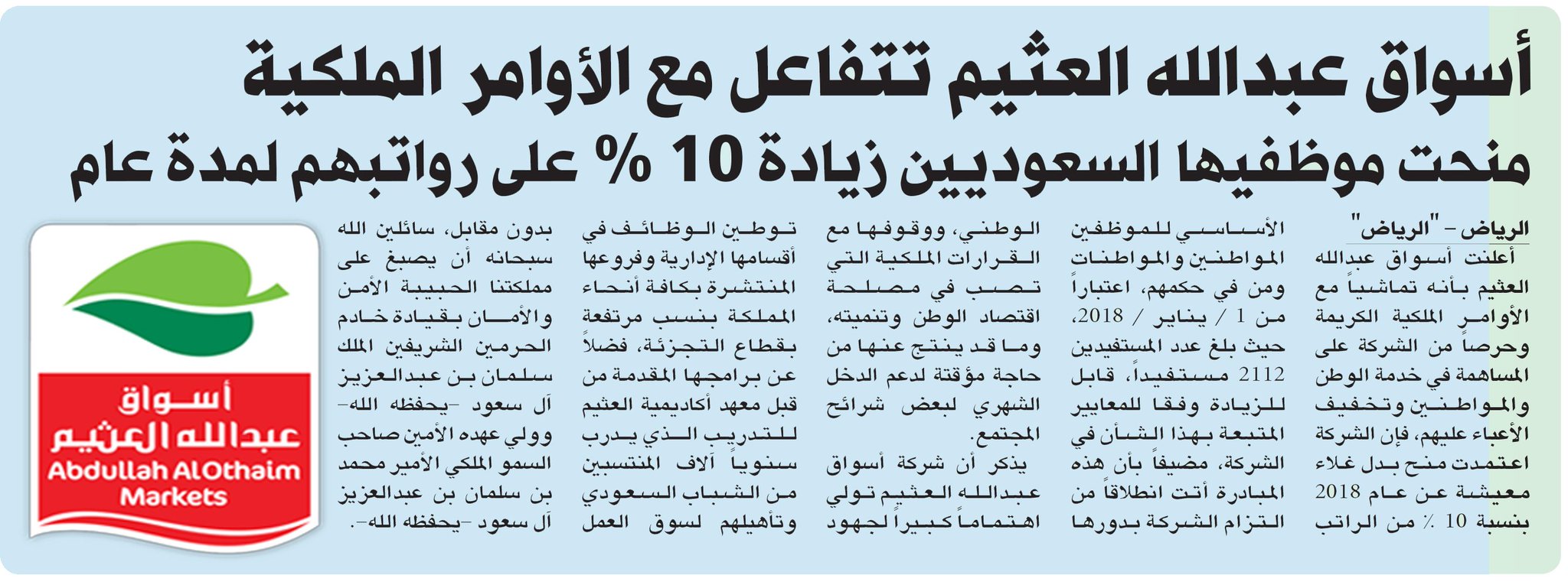 Uzivatel أسواق عبدالله العثيم Na Twitteru منحت موظفيها السعوديين زيادة 10 على رواتبهم لمدة عام أسواق عبدالله العثيم تتفاعل مع الأوامر الملكية Https T Co G5xsvwu78i Azizalothaim Https T Co Lpo6gi5yaj