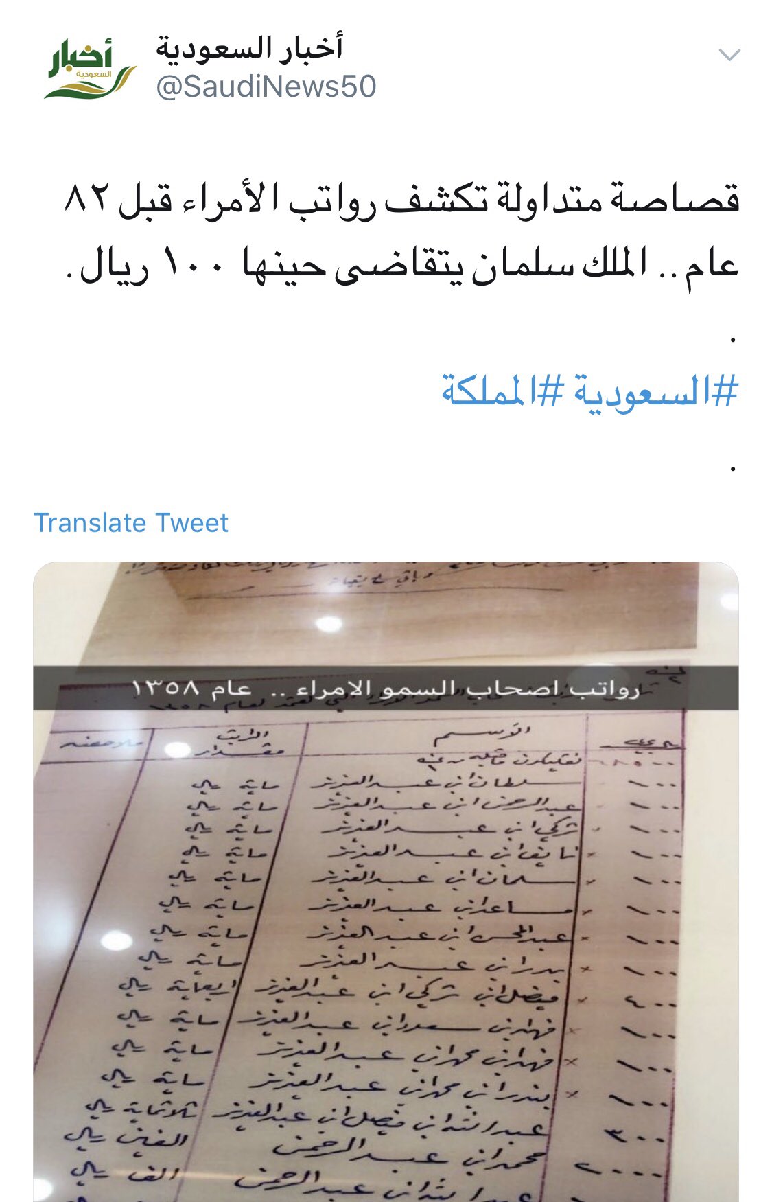 صلاح الغيدان Pa Twitter شاهد كم كان راتب الملك سلمان قبل 80 عام الله يمد ه بطولة العمر على الطاعة ويعز به الإسلام والمسلمين آمين