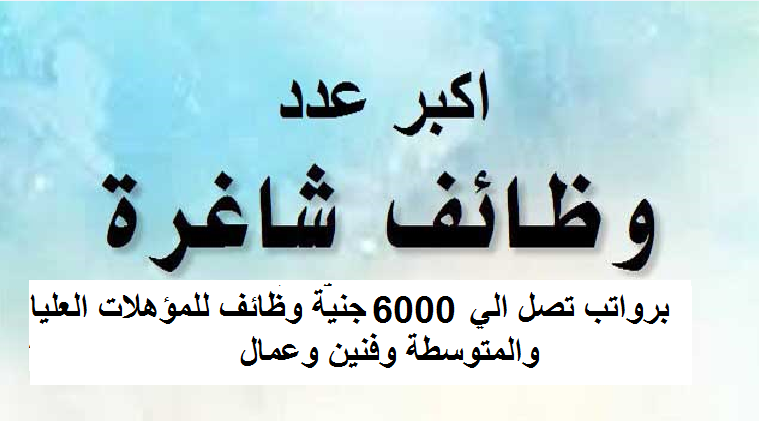 رواتب 6000 جنية اكبر كم وظائف خالية منشورة لجميع المؤهلات العليا والمتوسطة والفنين وعمال 2020