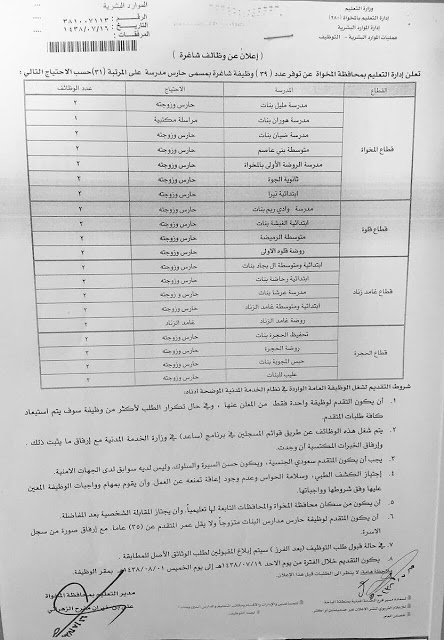 هنا جدول تقسيم وظائف حراس المدارس على إدارات التعليم صحيفة المواطن الإلكترونية