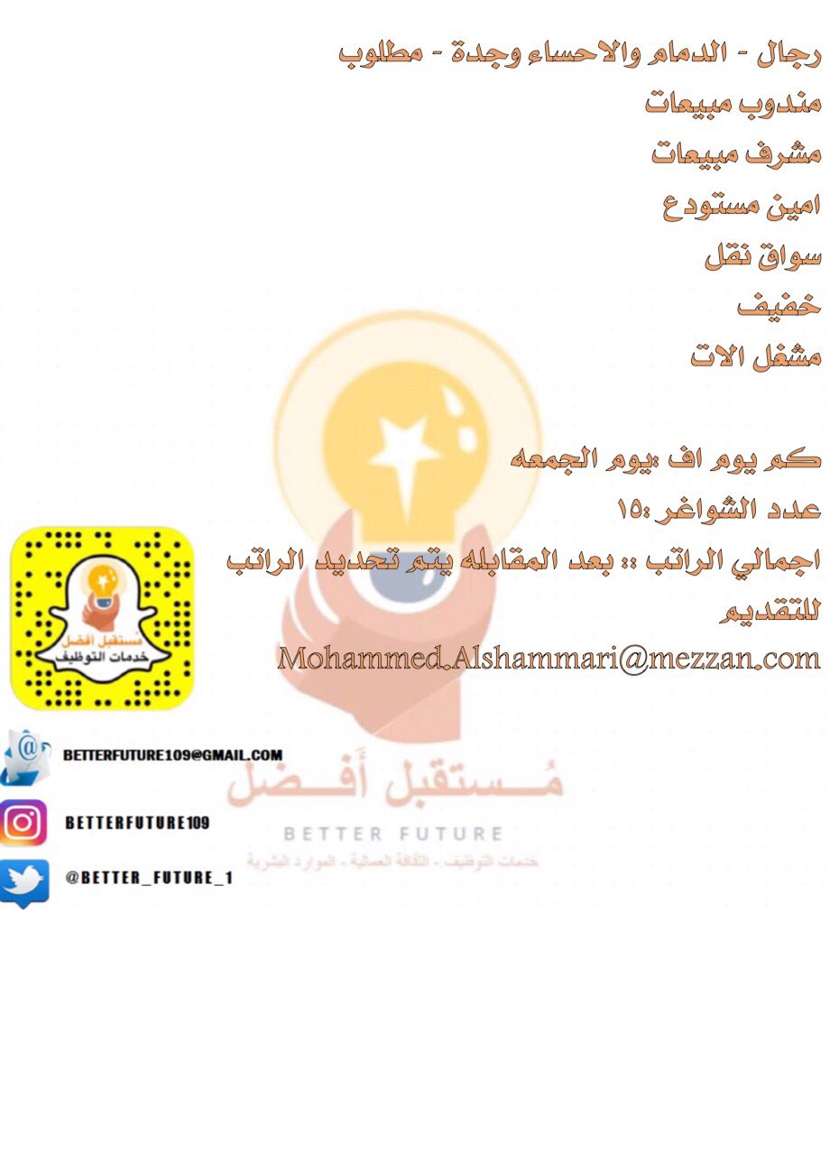 م ستقبل أ فضل Betterfuture On Twitter رجال الدمام والأحساء وجدة مطلوب مندوب مبيعات مشرف مبيعات أمين مستودع سواق نقل خفيف مشغل آلات وظائف شاغرة Https T Co Vcogptu3yt