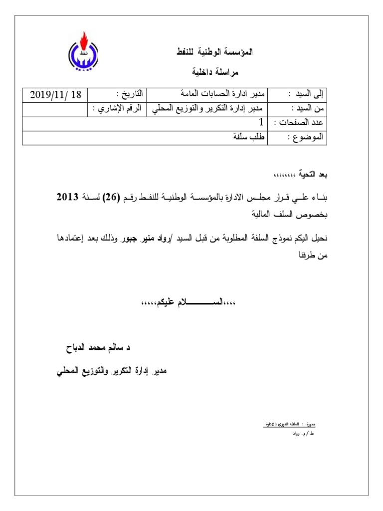 كيفية كتابة طلب سلفة من الشركة