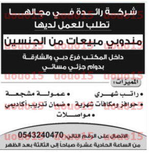 وظائف مندوب مبيعات 28 11 2017 وظائف شاغرة فى الامارات
