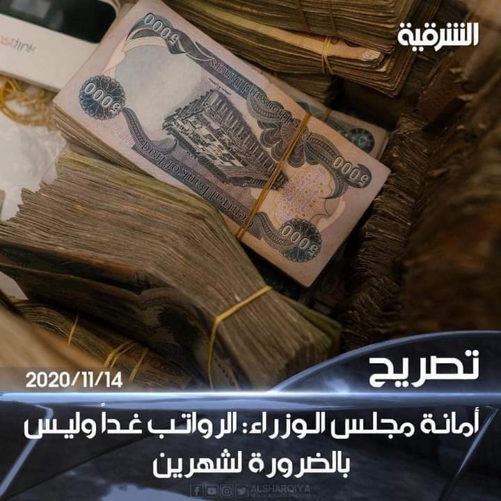 العراق صرف رواتب موظفي الحكومة بمصرفا الرافدين والرشيد عين تركيا