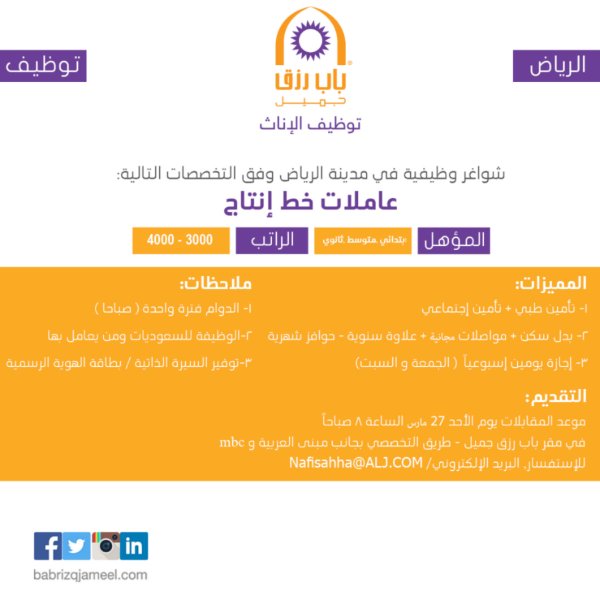 وظائف نسائية On Twitter وظائف نسائية في جنوب الرياض مصنع جنوب الرياض طريق الخرج يرغب في موظفات تعبئة وتغليف فترات العمل من ٦ص الى ٢ ظ الراتب الاجمالي ٣٠٠٠ ريال Jobs Km وظيفه توظيف