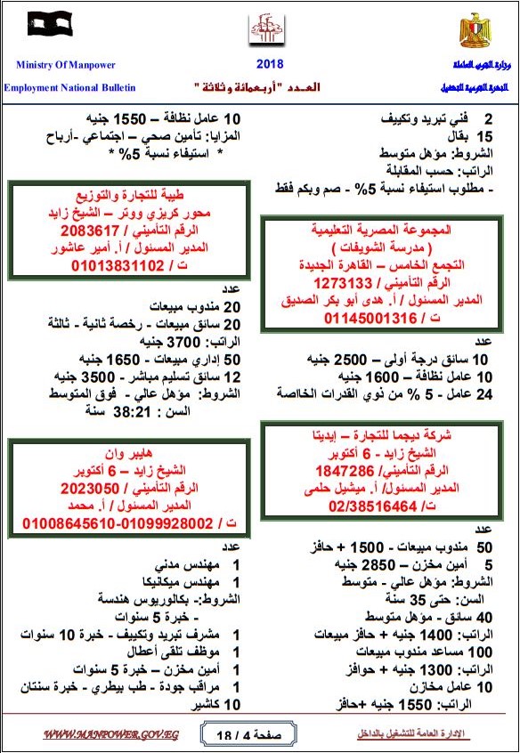 النشرة القومية للتشغيل وظائف القوى العاملة 25333 فرصة عمل وبرواتب تصل 10000 جنية
