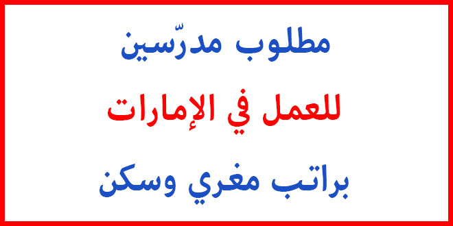 مطلوب مدرسين ومدرسات للعمل في الامارات براتب 9000 درهم
