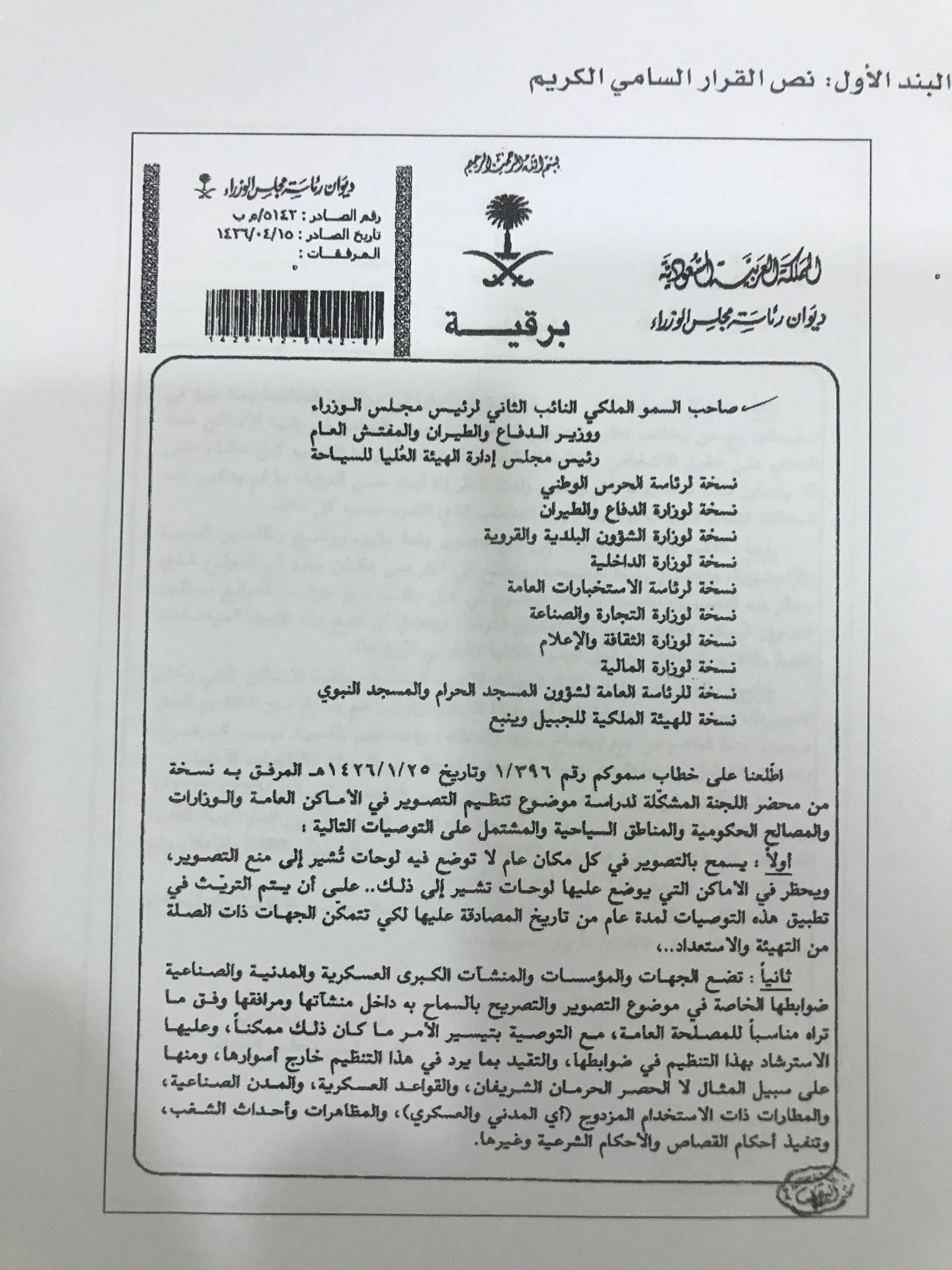 حسام العبداللطيف No Twitter هناك خطأ في صياغة المعلومة التصوير في الاماكن العامة مسموح بالقرار السامي رقم ب 5142 م ب تاريخ 1426 04 15 هناك تنظيم للتصوير بالاماكن العامة Https T Co Sd2myefjx0